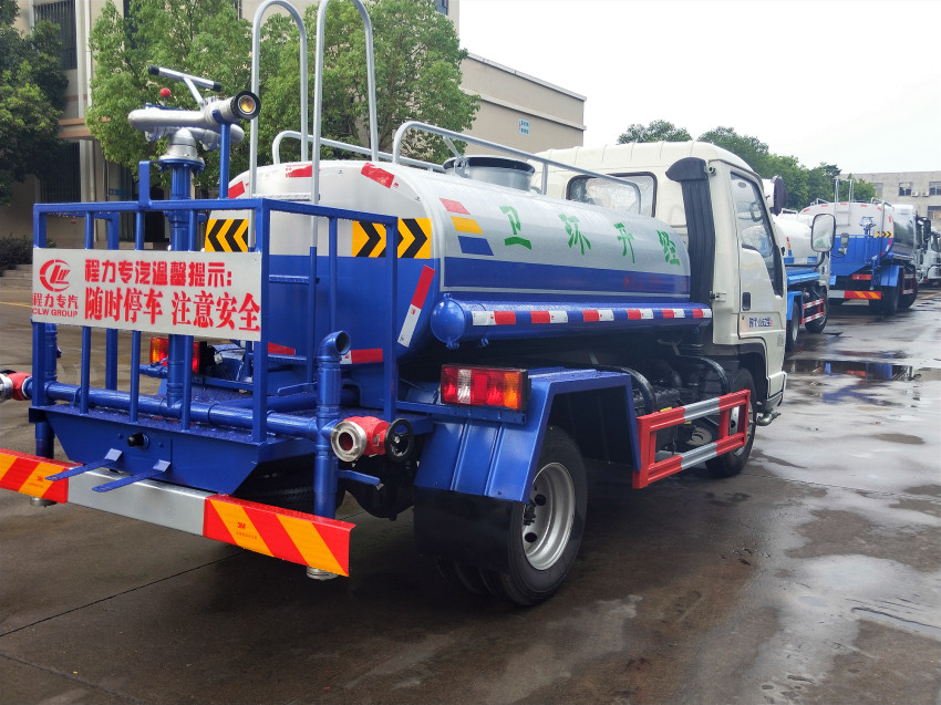 凱馬2噸灑水車(國五),罐體容積2立方,藍牌灑水車常賣車型。采用凱馬新款凱捷車身(1640寬度)5檔變速箱,4噸后橋,140直通大梁,6.50-16輪胎,油剎,原廠方向助力,原廠ABS,原廠空調。整車帶免征,環(huán)保已達標。采用武鋼4mm優(yōu)質碳鋼板一次卷壓成型,完全做到無縫成型。罐體內設多道防波隔板,采用高壓氣體試漏檢測,使罐體具有強度高,重心穩(wěn),車輛運載安全平穩(wěn)。程力灑水車廠擁有自動化灑水車烤漆車間,罐體可保證5年不生銹。罐體及保險杠貼紅白色反光條,罐體兩側噴“灑水車”字樣(可按客戶指定要求噴繪字樣),罐體顏色可選擇上白下藍或銀灰銀藍