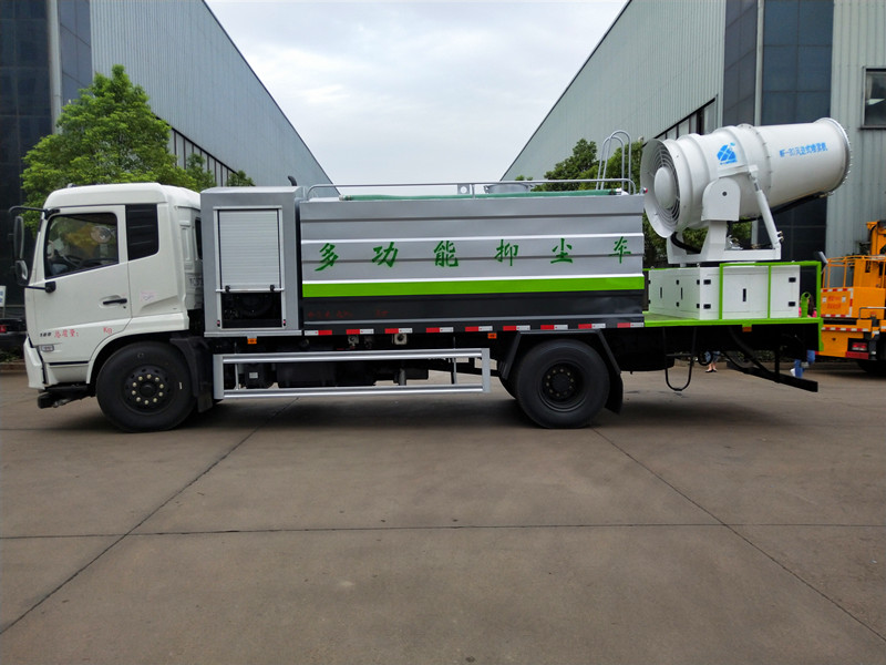 湖北運隆生產(chǎn)的環(huán)保多功能抑塵車采用車底盤動力通過液壓系統(tǒng)驅(qū)動霧炮 ,實現(xiàn)了大范圍工作范圍無極調(diào)速控制,按照實際需求分配動力,大幅降低能耗,減輕整車無效載荷,可旋轉(zhuǎn)360度,射程規(guī)格有20、30米、40米、50米、60米、70米、80米90米、100米、120米、150米等,普通灑水車只能對地面的浮塵進行沖清,而這種新型環(huán)保多功能抑塵車具有強大灑水車的噴霧降塵功能,能360度全方位送風霧化降塵,用于降低 PM10、PM2.5,被譽為“PM2.5治理神器”,通過把水轉(zhuǎn)化為水霧的形式,直接對大氣中的粉塵進行抑制,這是一般灑水車無法做到的.