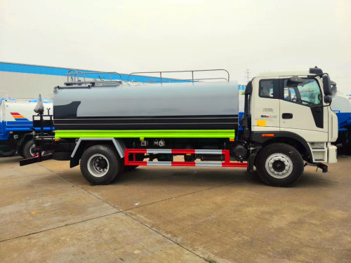 多功能灑水車前噴后灑,前裝有鴨形噴嘴或圓頭沖嘴,后面裝有圓柱開灑水噴嘴或蓮蓬頭噴嘴,后部有一工作平臺(tái),裝配有高壓水炮。按類型可分為噴灑式、沖洗式、噴灑-沖洗式。四通閥門后柄拉至與地面平行,打開想要噴灑的球閥(前沖、后灑、側(cè)噴、花灑),然后起動(dòng)發(fā)動(dòng)機(jī),將變速器掛入擋位,將取力器開關(guān)向后拉即掛檔取力,然后分離離合器,泵開始運(yùn)轉(zhuǎn),開始灑水。罐體內(nèi)的水灑完后,灑水車駕駛應(yīng)及時(shí)將取力器操縱柄向前推即脫檔,灑水泵停止運(yùn)轉(zhuǎn)。是一種非常便捷的環(huán)保車輛。