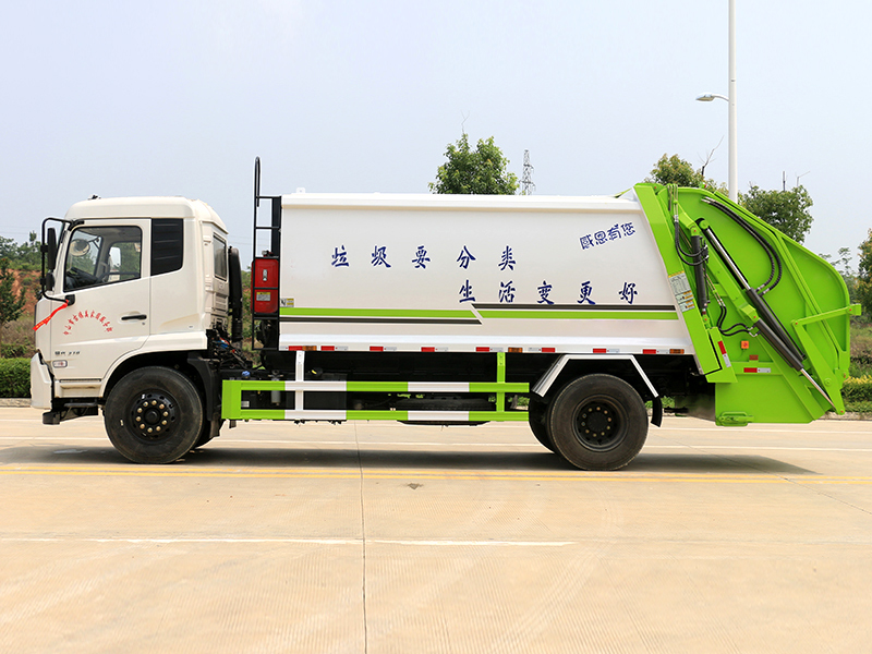 新款平面弧形廂體,廂體材料為武鋼優(yōu)質(zhì)碳鋼,外箱尺寸:8890×2500×3300mm,有效壓縮容積12-14立方,PLC一鍵操作控制,手電一體操作模式,兩側(cè)雙電控,帶駕駛室內(nèi)操作,底板支撐加強(qiáng),雙向壓縮,開放式易清潔污水箱。壓縮式垃圾車采用機(jī)電液一體化技術(shù),借助機(jī)、電、液聯(lián)合自動控制系統(tǒng)、電腦控制、手動操作系統(tǒng),通過填裝器和推鏟等專用裝置,實現(xiàn)垃圾倒入、壓碎或壓扁、強(qiáng)力裝填,把垃圾擠入車廂并壓實和推卸,污水全部進(jìn)入污水收集箱,解決了垃圾運輸過程中的二次污染的問題。壓縮式垃圾車具有自動反復(fù)壓縮以及蠕動壓縮功能,壓縮比高、密封性好、裝載量大﹑操作方便、環(huán)保性好﹑整車?yán)霉β矢叩葍?yōu)點。