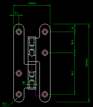 產(chǎn)品規(guī)格及名稱:110×55×2.5 mmH鉸
